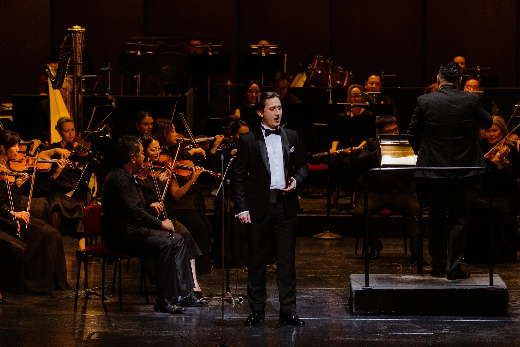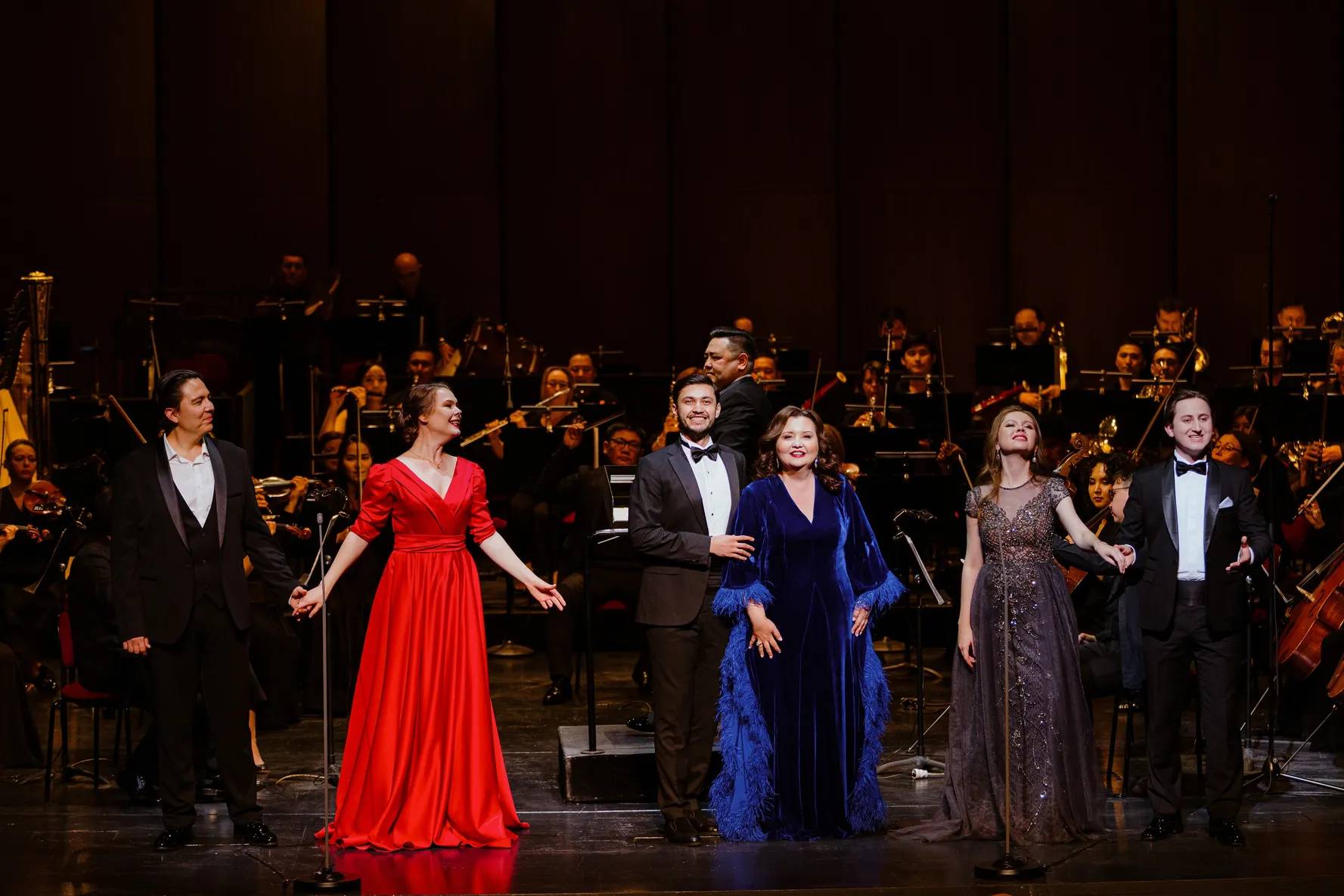 Вечер открыл знаменитый симфонический кюй «Құдаша-думан» Е.Рахмадиева. Программа была составлена блестяще, демонстрируя как мощь классического наследия, так и многогранность вокалистов. Певица, которую критики ведущих мировых изданий называют «феноменом», представила песню итальянского композитора Эрнесто де Куртиса Non ti scordar di me («Не забывай меня»).