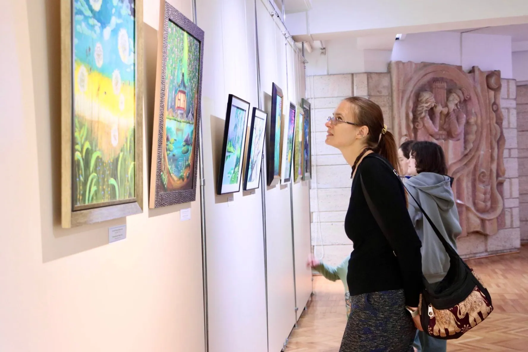 Детская выставка представила 40 различных художественных работ, которые отразили как пейзажи природы, так и женские образы в национальном стали. Картины были выполнены в разных художественных техниках, но самое главное, что они отразили внутренний мир юных мастеров, ожидание весны и яркий взгляд на окружающий мир.