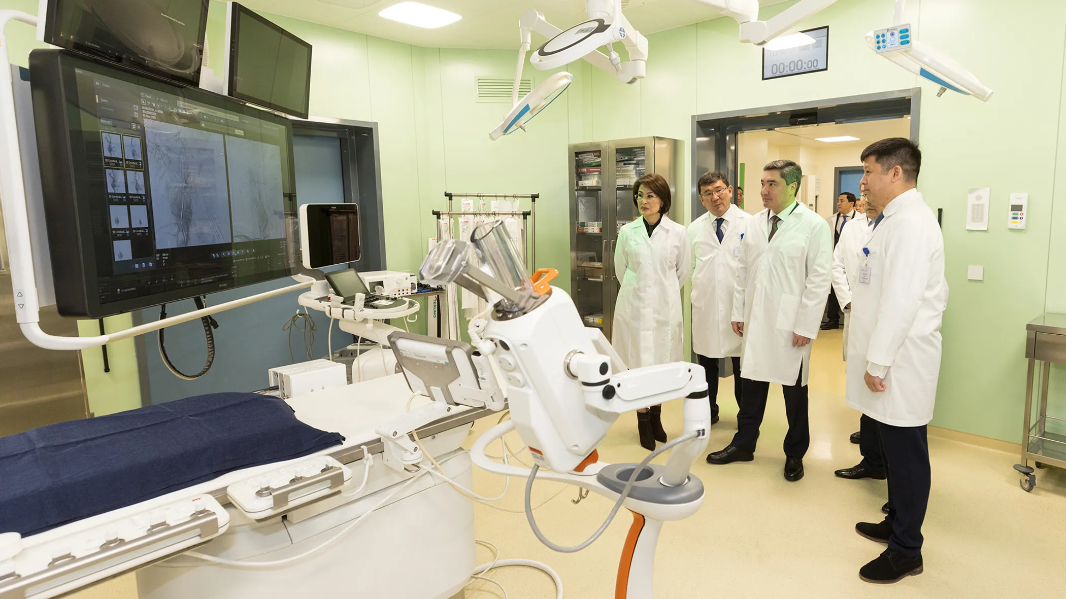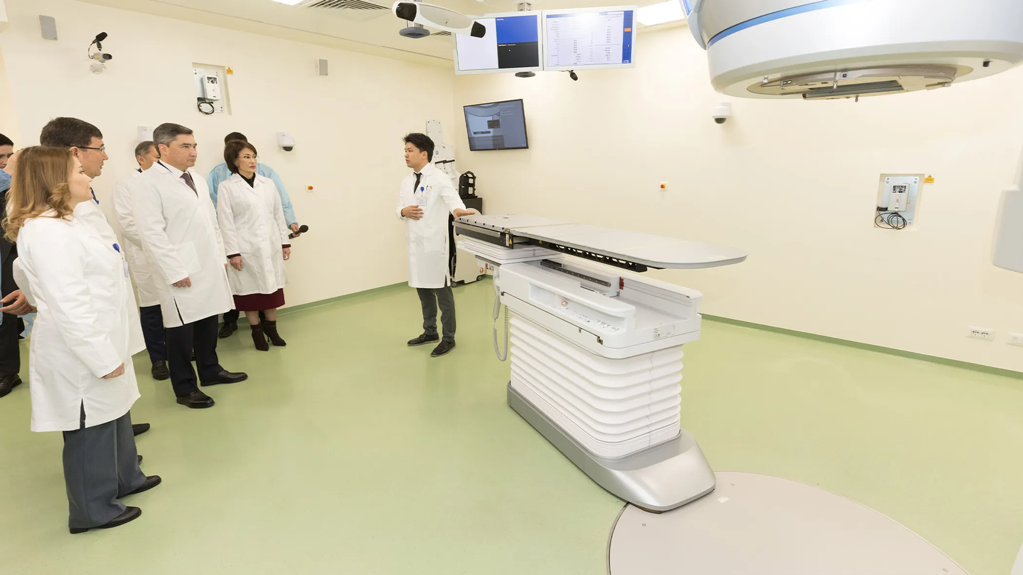 Особое внимание уделено внедрению ИИ в лучевой и протонной терапии. В ННОЦ работают семь бункеров с линейными ускорителями Varian, включая EDGE и ETHOS. Центр протонной терапии — единственный в Центральной Азии, оснащённый системой ProBeam 360; рассчитан на до 1 тыс. пациентов в год, включая иностранцев.