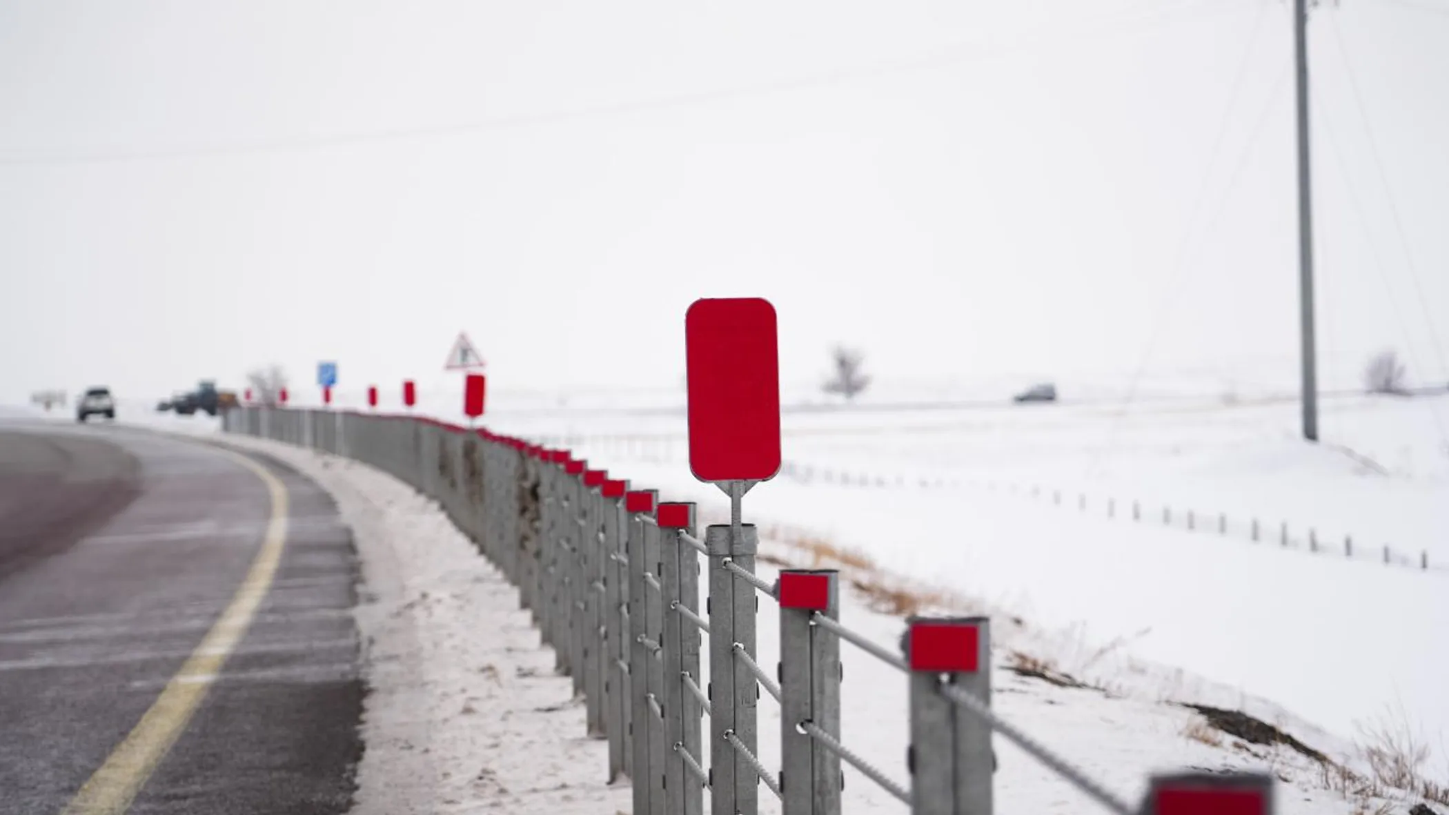 Экспериментальный участок протяженностью около 500 метров расположен вблизи города Темиртау. Тросовые ограждения установлены в центральной разделительной полосе и на обочине дороги.